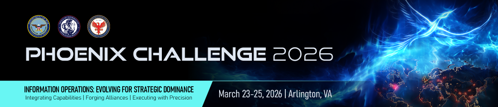 The United States Department of Defense, Office of Information Operations Policy (OIOP) welcomes you to Phoenix Challenge 2026, to be held at the Crystal Gateway Marriott, March 23-25, 2026. Building on the momentum from Phoenix Challenge 2025 in London, this year's event will explore "Information Operations: Evolving for Strategic Dominance." We will delve into integrating capabilities, forging alliances, and executing with precision to achieve a decisive advantage in the information domain.